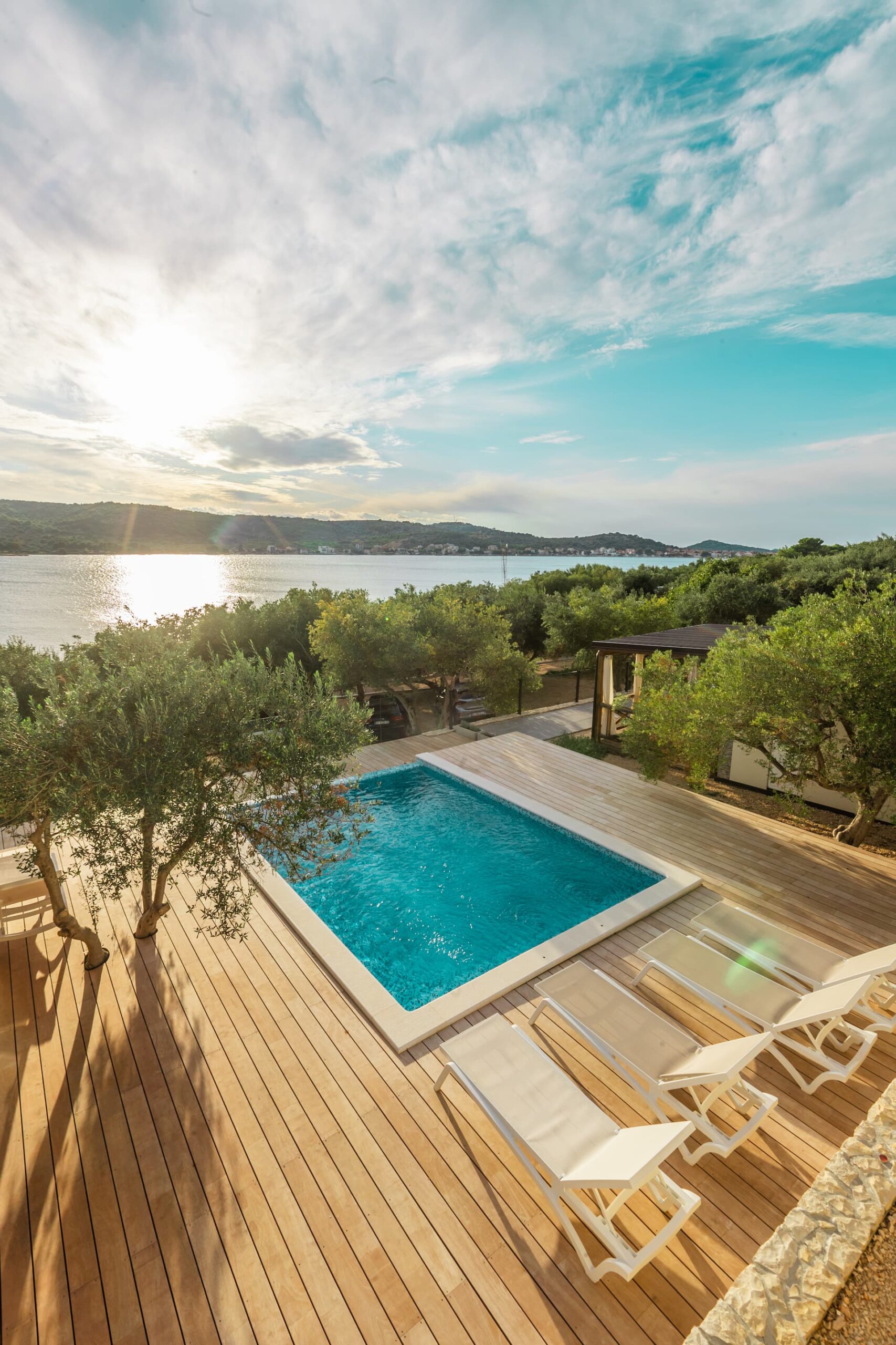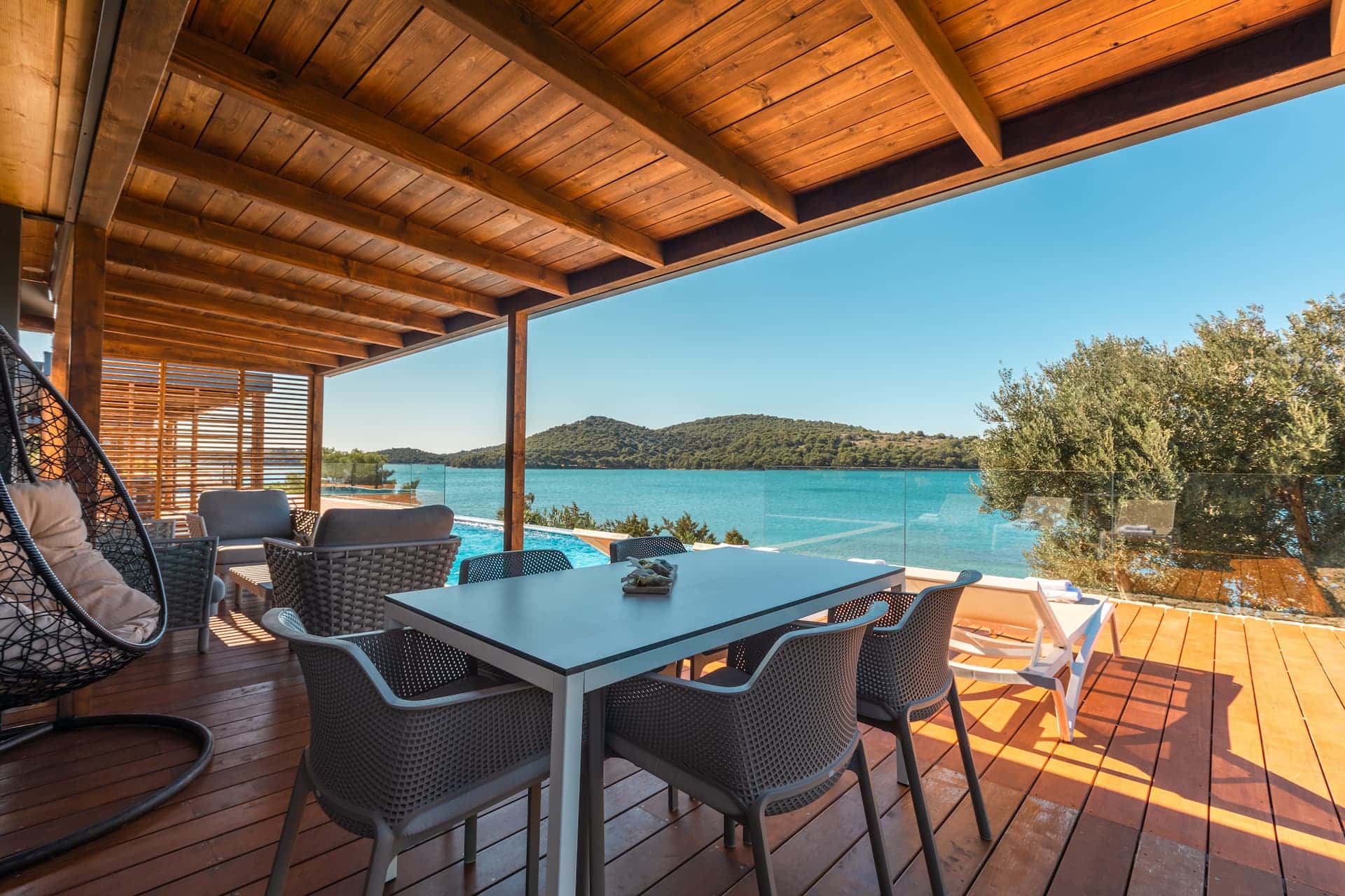 - covered terrace 38m² with outdoor lounge furniture and sun loungers